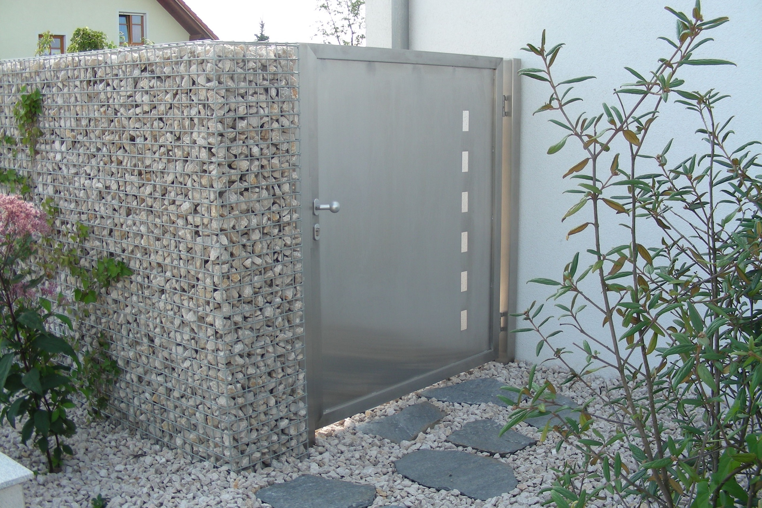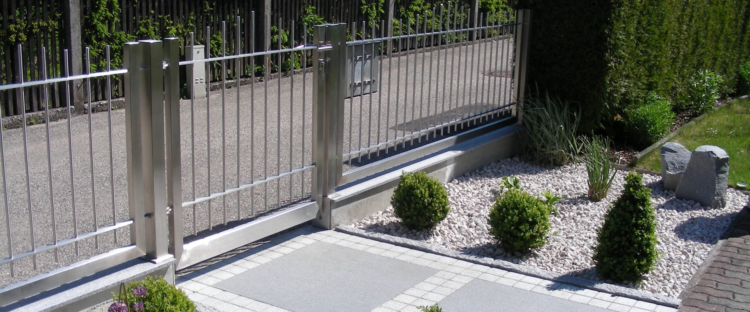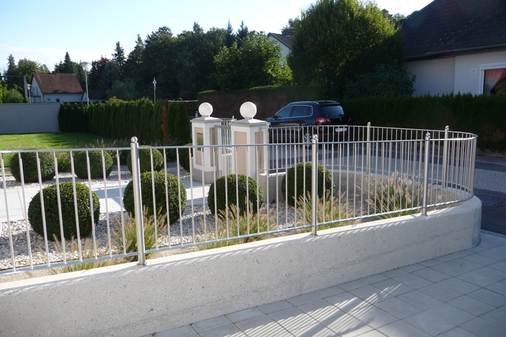 Salzbeständiges Edelstahl und pulverbeschichtetes Aluminium sind die idealen Materialien für ihren Gartenzaun. Passende Einfahrtstore und Eingangstüren werden ebenfalls von uns gefertigt.